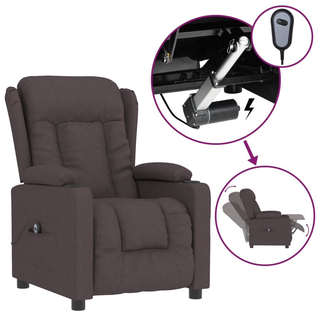 Poltrona Elettrica Reclinabile Marrone Scuro in Tessuto