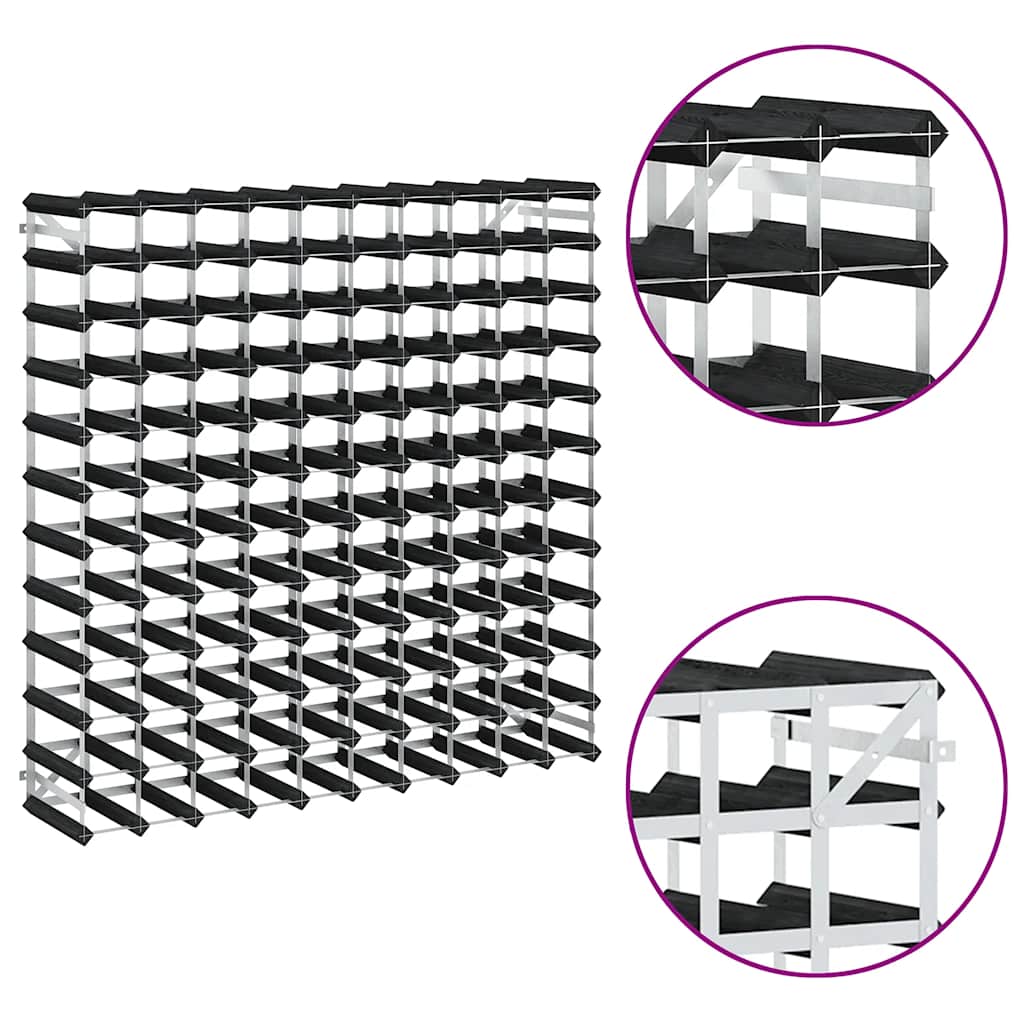 Portavini da 120 Bottiglie Nero in Legno Massello di Pino
