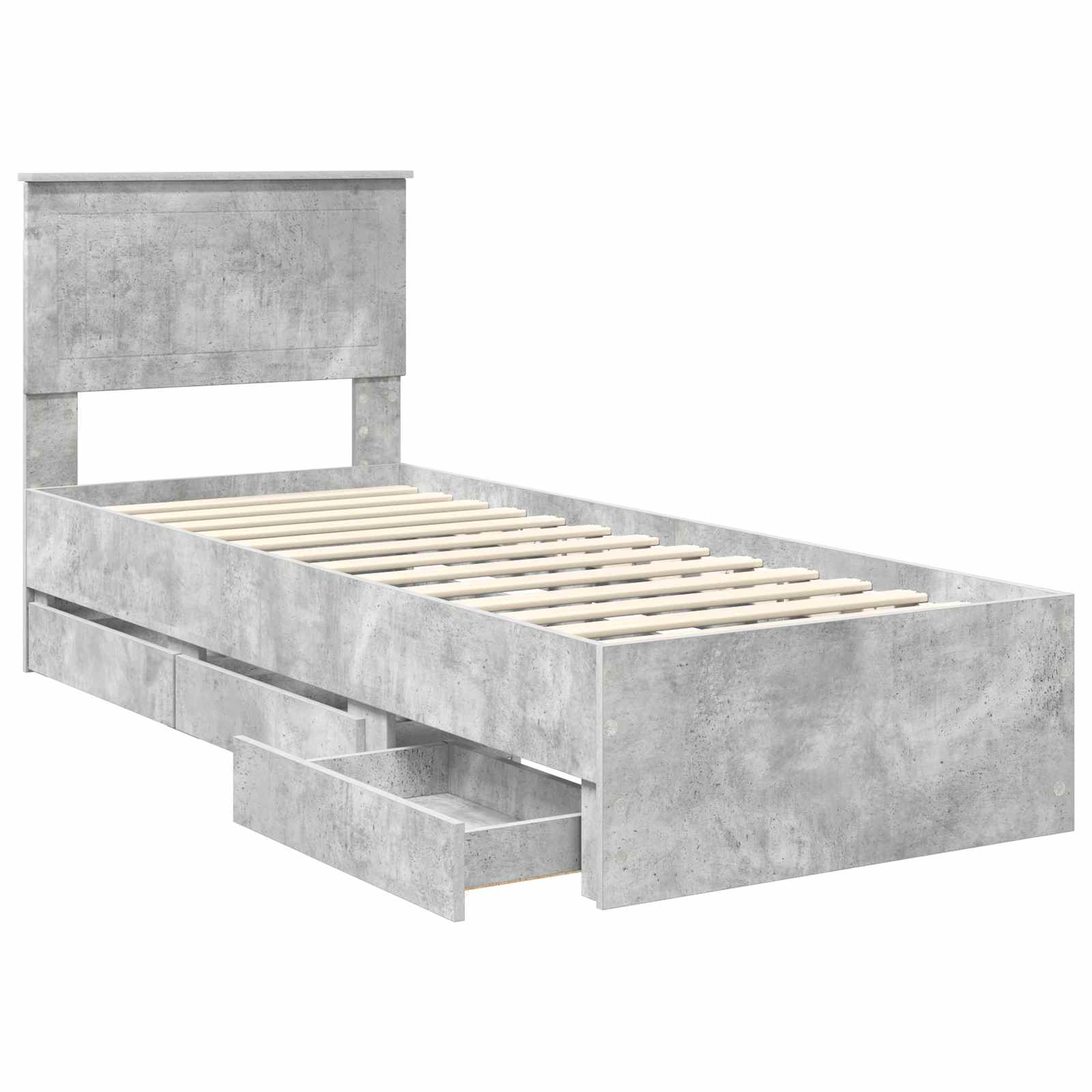 Struttura del letto con cassetto Grigio cemento 75 x 190 cm
