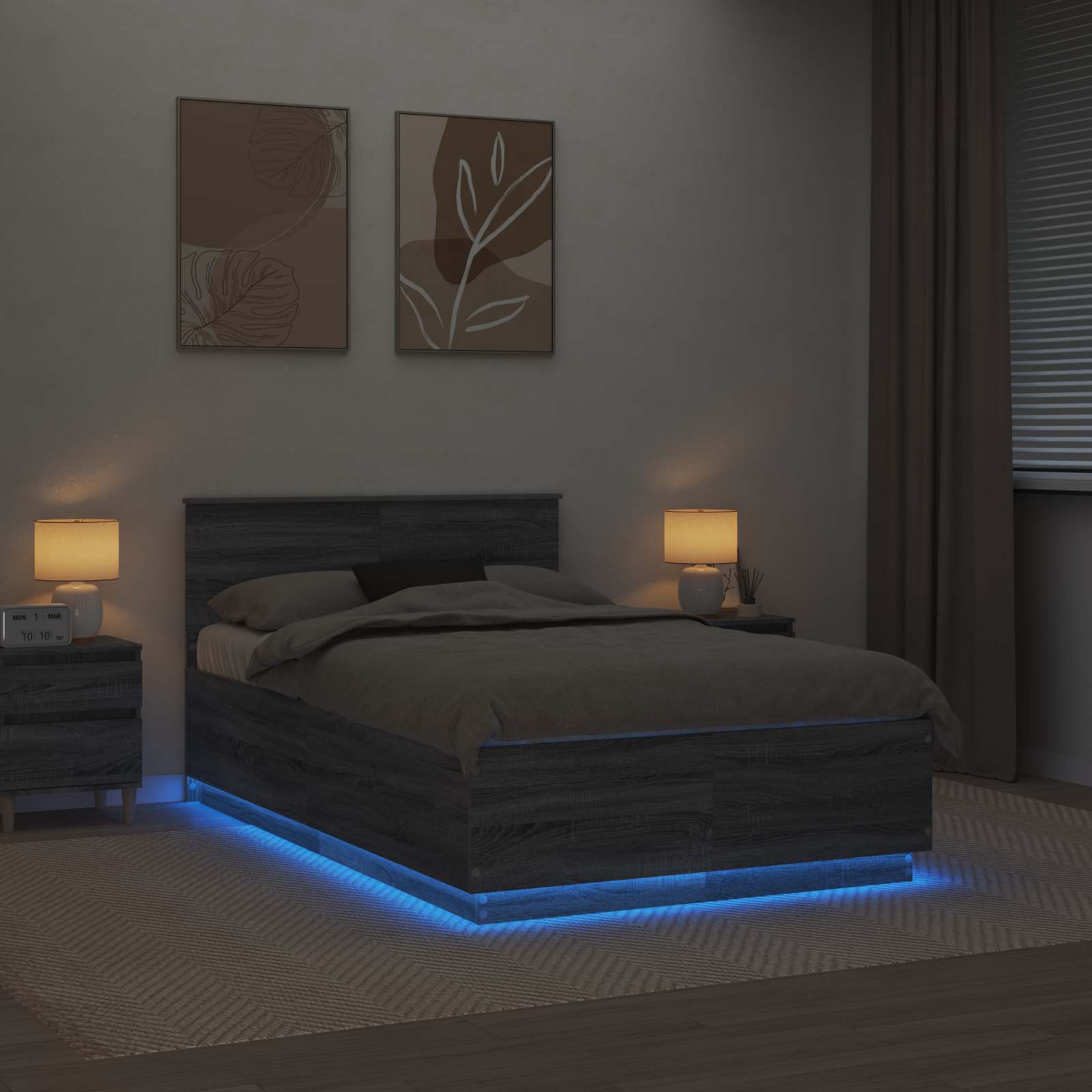 - Materiali: La struttura è in legno ingegnerizzato di alta qualità, resistente e con una buona stabilità. Questo materiale assicura un aspetto duraturo e moderno nella tua camera da letto, offrendo stabilità e longevità.