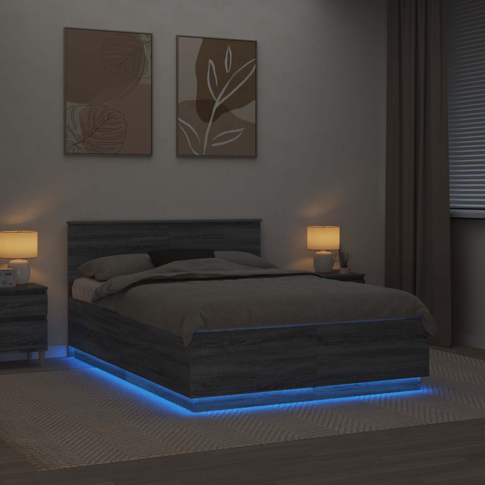 Questa moderna struttura del letto darà una nuova vita alla tua camera da letto con il suo design elegante. Il telaio in legno ingegnerizzato ha un aspetto pulito e minimalista che si adatta perfettamente a qualsiasi ambiente. È progettato per migliorare la tua esperienza di sonno con una testiera regolabile e luci LED rilassanti per creare un'atmosfera accogliente.