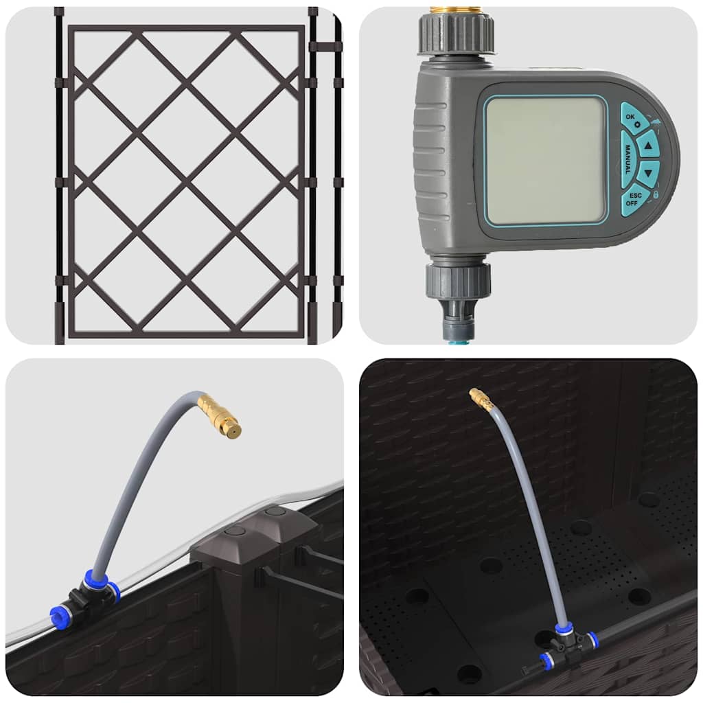 La Fioriera da Giardino con Irrigazione è la scelta perfetta per chi cerca un'aggiunta pratica e bella al proprio spazio esterno. Con un design moderno, si integra facilmente in qualsiasi giardino o terrazza. È pensata per essere semplice e funzionale, portando un tocco di eleganza nelle tue piante, sia che tu sia un giardiniere esperto o un principiante. Unisce stile e praticità per un ambiente ideale per il tuo giardinaggio.