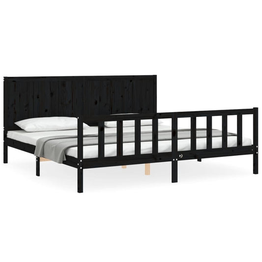 Giroletto con Testiera Nero 200x200 cm in Legno Massello