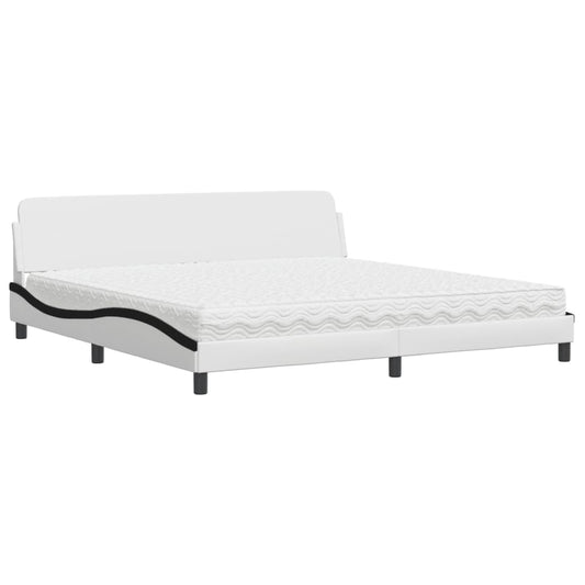 Letto con Materasso Dover Bianco e Nero 200x200cm in Similpelle