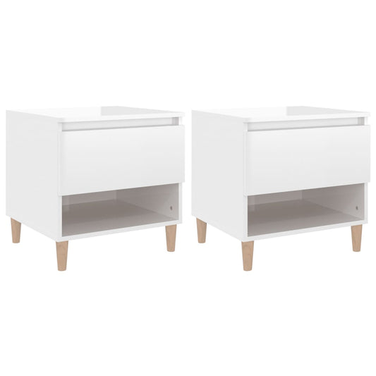 Comodini 2 pz Bianco Lucido 50x46x50 cm in Legno Multistrato