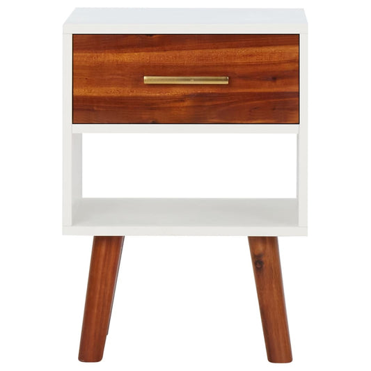 Comodino con 1 Cassetto Marrone e Bianco