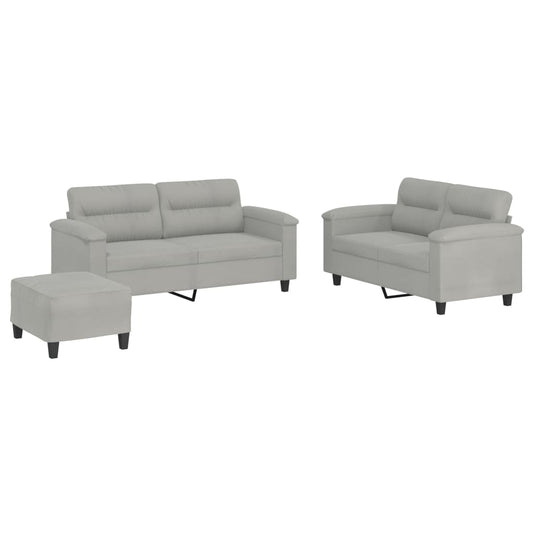 Set Divani 3 pz con Cuscini Grigio Chiaro in Tessuto Microfibra