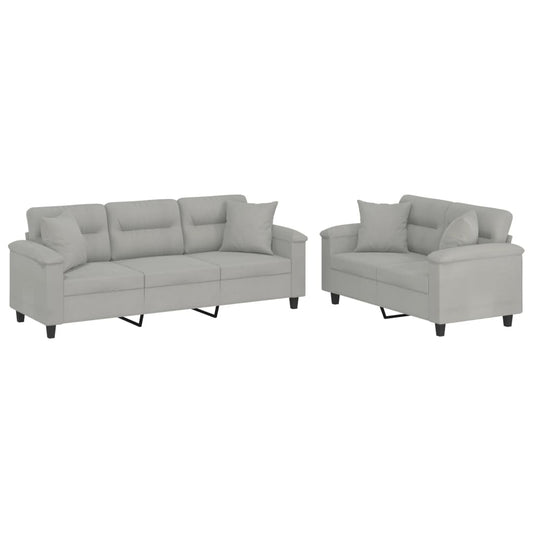 Set Divani 2 pz con Cuscini Grigio Chiaro in Tessuto Microfibra