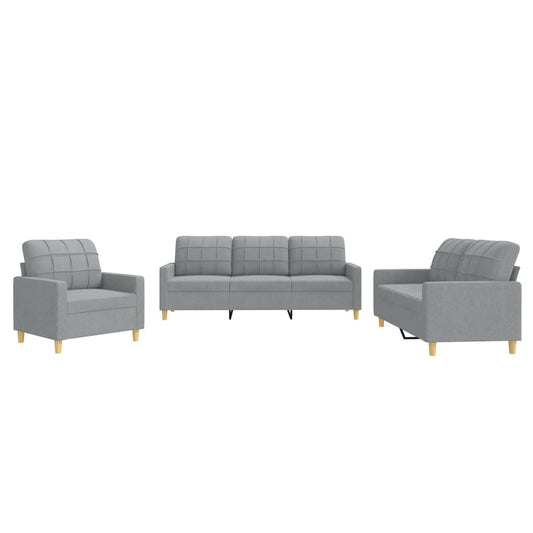 Set di Divani 3 pz con Cuscini Grigio Chiaro in Tessuto