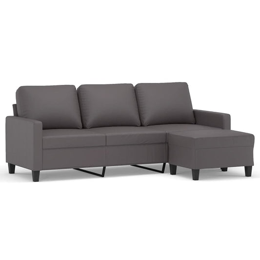 Divano a 3 Posti con Poggiapiedi grigio 180 cm in Similpelle