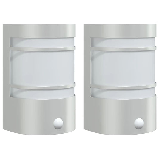 Applique per Esterno con Sensore 2 pz Argento in Acciaio Inox