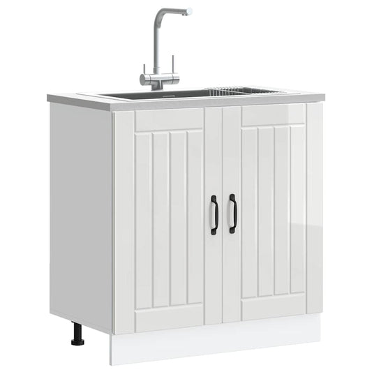 Mobile Base Lavello Lucca Bianco Lucido in Legno Multistrato