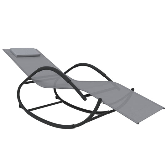 Lettino Prendisole a Dondolo in Acciaio e Textilene Grigio