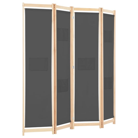 Divisorio a 4 Pannelli Grigio 160x170x4 cm in Tessuto