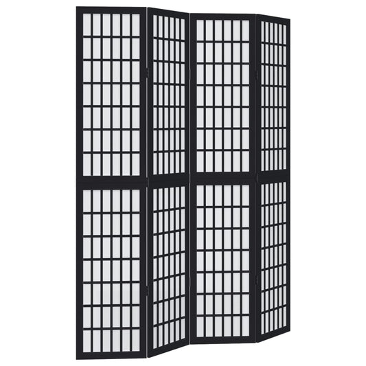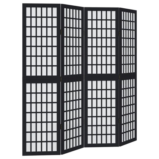 Divisorio Ambienti 4 Pannelli Nero Legno Massello di Paulownia