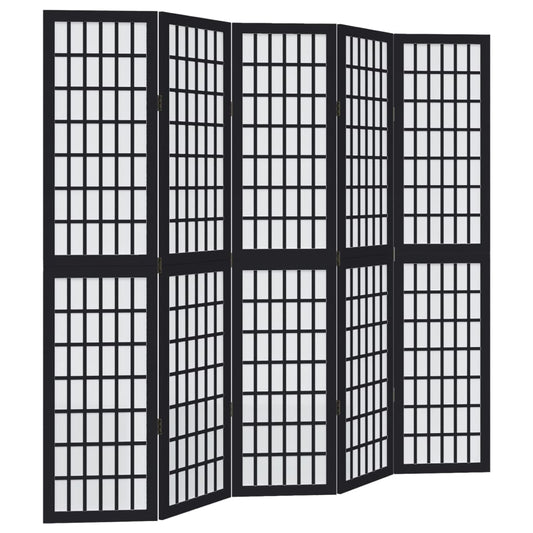 Divisorio Ambienti 5 Pannelli Nero Legno Massello di Paulownia