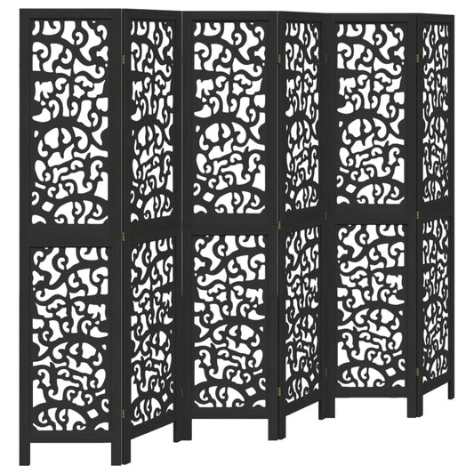 Divisorio Ambienti 6 Pannelli Nero Legno Massello di Paulownia