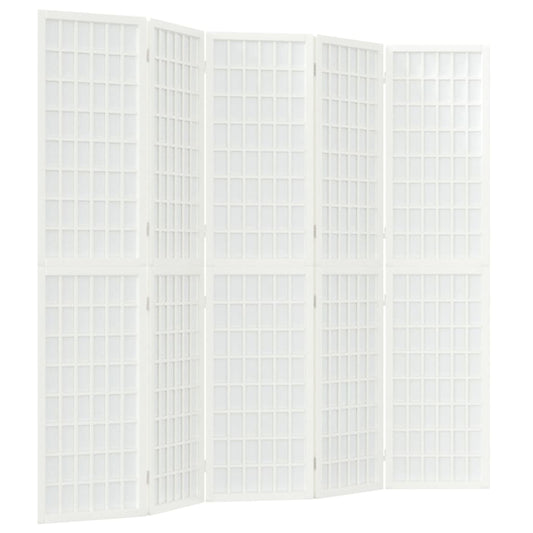 Divisorio Pieghevole 5 Pannelli Stile Giapponese 200x170 Bianco