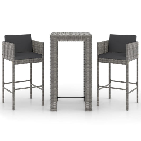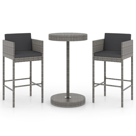 Set Bar da Giardino 3 pz con Cuscini in Polyrattan Grigio