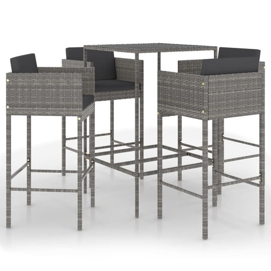 Set da Bar da Giardino 5 pz con Cuscini in Polyrattan Grigio