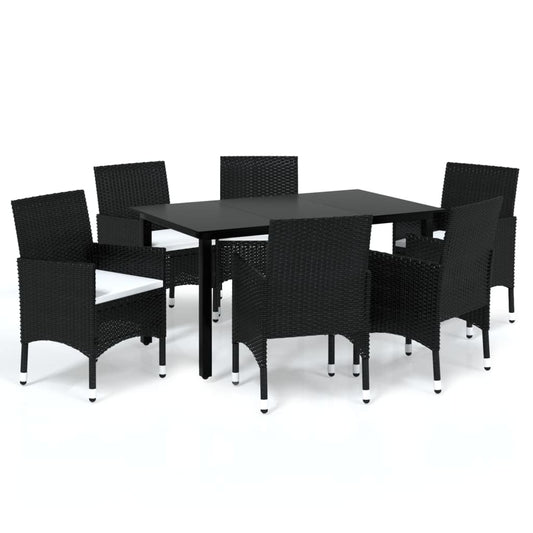 Set da Pranzo da Giardino 7 pz Nero con Cuscini in Polyrattan