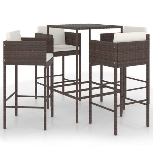 Set da Bar da Giardino 5 pz con Cuscini in Polyrattan Marrone