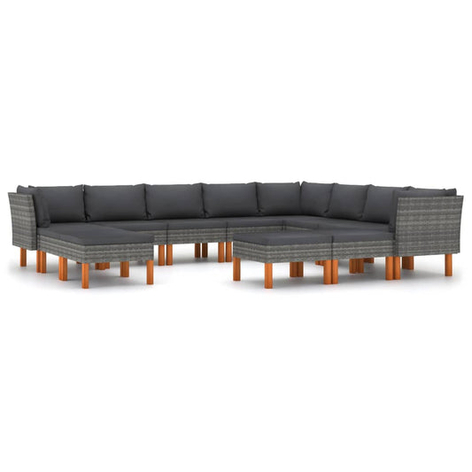 Set Divani da Giardino 12 pz con Cuscini in Polyrattan Grigio