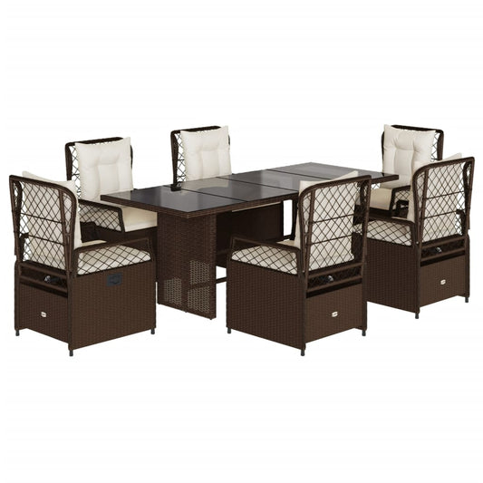 Set da Pranzo da Giardino 7pz con Cuscini in Polyrattan Marrone