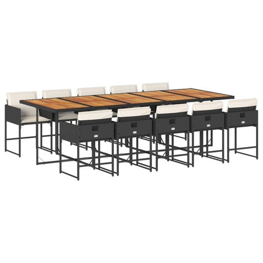 Set da Pranzo da Giardino 15 pz con Cuscini Nero in Polyrattan