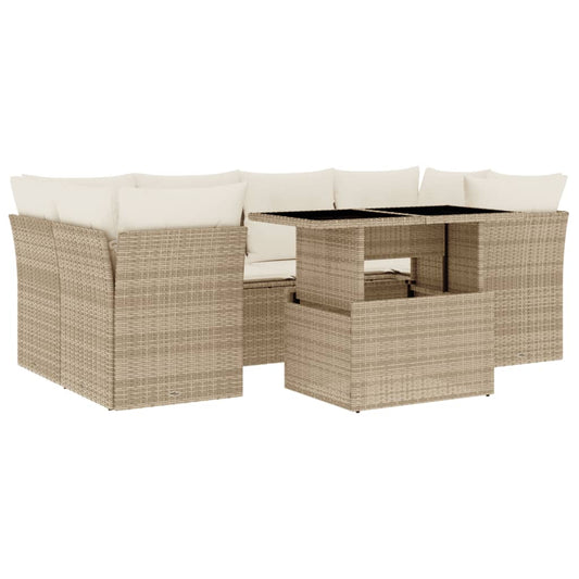 Set Divani da Giardino 7 pz con Cuscini Beige in Polyrattan