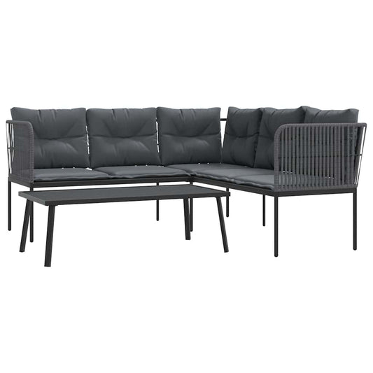 Set Divano da Giardino con Cuscini Nero Acciaio e Textilene