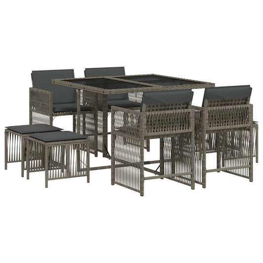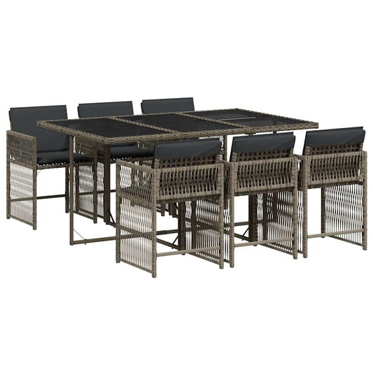 Set da Pranzo da Giardino 9 pz con Cuscini in Polyrattan Grigio