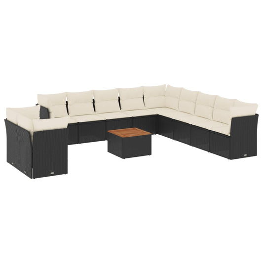 Set Divani da Giardino 13pz con Cuscini Nero in Polyrattan