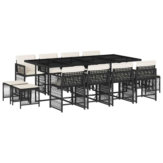 Set da Pranzo da Giardino 15 pz con Cuscini Nero in Polyrattan