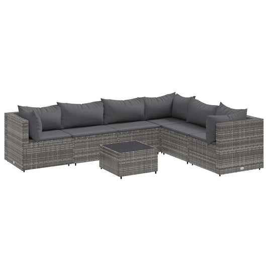 Set Divani da Giardino 7 pz con Cuscini in Polyrattan Grigio