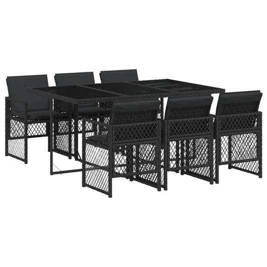 Set da Pranzo da Giardino 7 pz Nero con Cuscini in Polyrattan