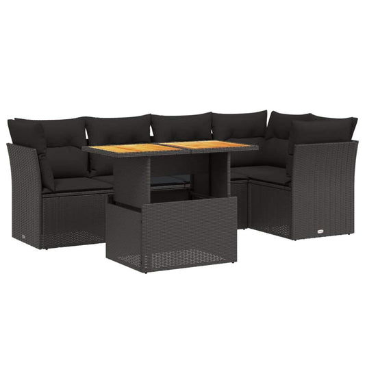 Set Divano da Giardino 6 pz con Cuscini Nero in Polyrattan