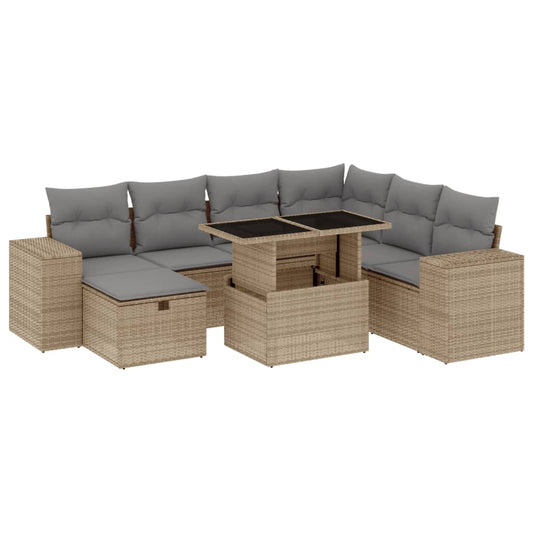 Set Divano da Giardino 8 pz con Cuscini Beige in Polyrattan