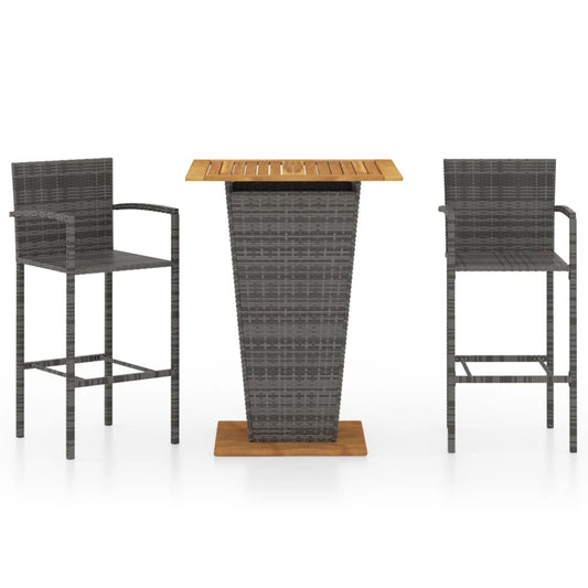 Set Bar da Giardino 3 pz con Cuscini in Polyrattan Grigio
