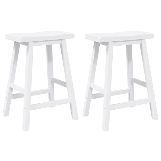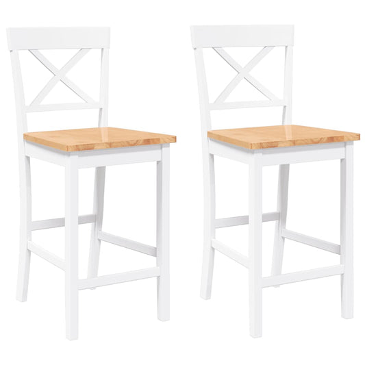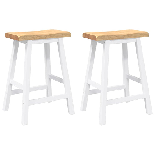 Sgabelli da Bar 2 pz Bianchi in Legno Massello di Hevea
