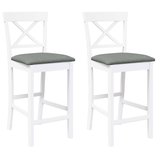 Sgabelli da Bar con Cuscini 2 pz Bianco Legno Massello di Hevea