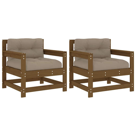 Sedie da Giardino con Cuscini 2pz Legno Massello di Pino Ambra