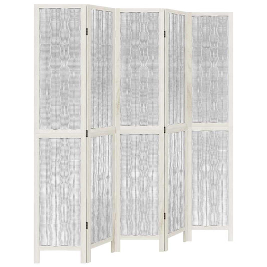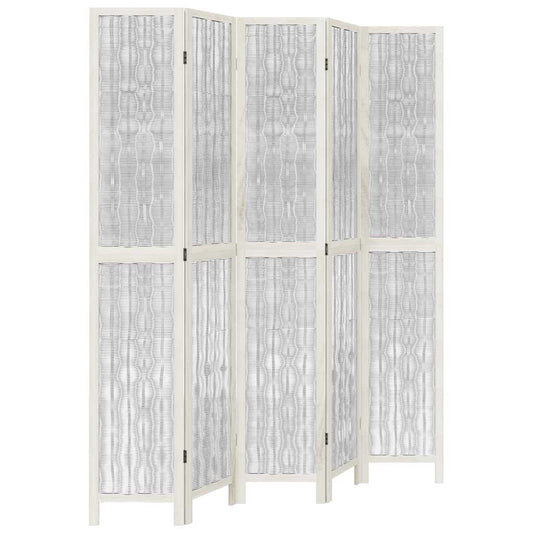 Divisorio Ambienti 5Pannelli Bianco Legno Massello di Paulownia