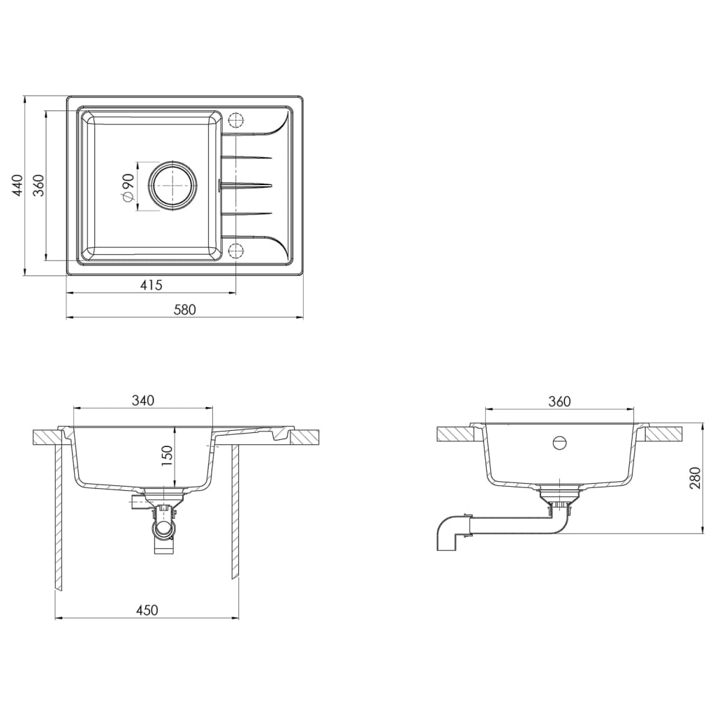Il lavello è realizzato in granito, essendo resistente al calore, ai graffi e agli urti e anche facile da pulire. Lo scolapiatti laterale vi offre spazio extra per i vostri piatti. Essendo completamente reversibile, può essere montato sia a sinistra che a destra del lavabo. È incluso anche un filtro a cestello per una facile rimozione dei detriti. Il foro ha un diametro di 90 mm.