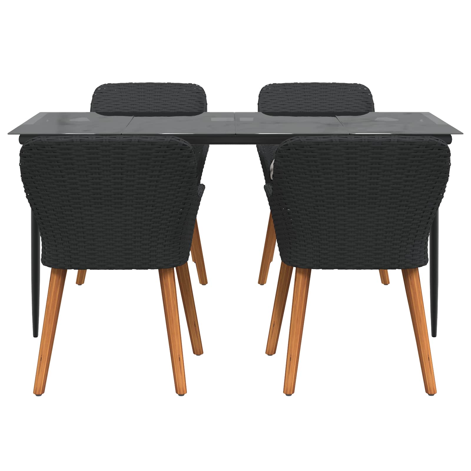 Set da Pranzo per Giardino con cuscino 5 pcs Nero polyrattan