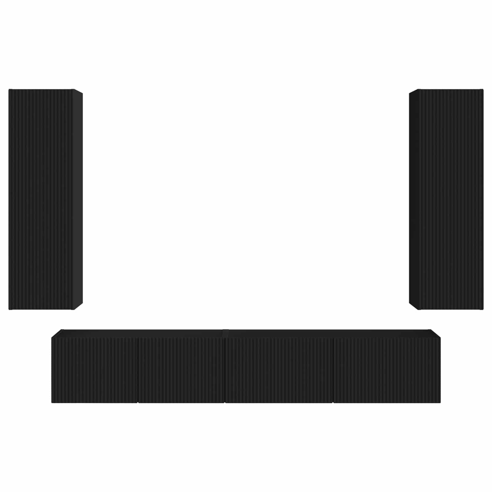 Set mobile TV Montaggio a parete 3 pcs Nero Legno multistrato
