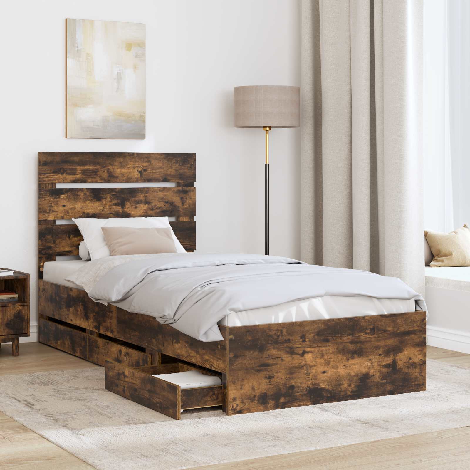 Struttura del letto con cassetto Rovere fumé 90 x 190 cm